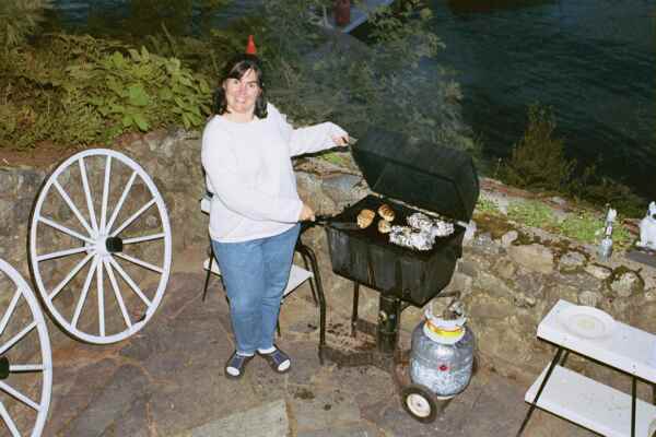 chicken. Sharon put on some chicken and grilled veggies. Jayn marinated some
