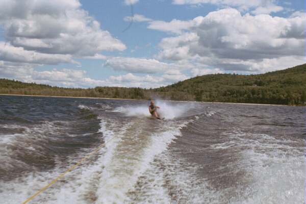 The rest of the day was spent tubing and skiing. Sharon was first up to ski,