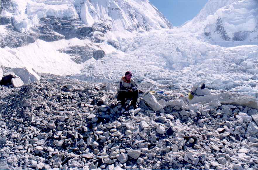 made his 11th ascent. Chwong sits at the foot of the icefall.