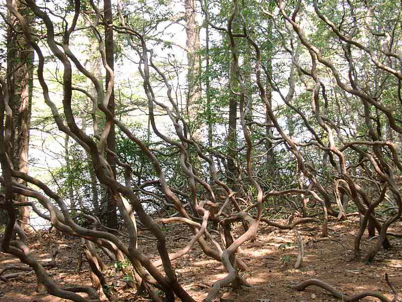 through a neat forest , where we got to look at some interesting mountain laurels. Shortly after that we
