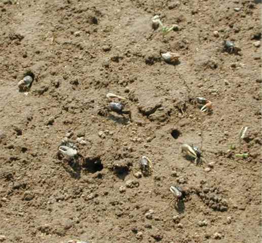 brownish jellyfish, millions of tiny crabs (they were all over the