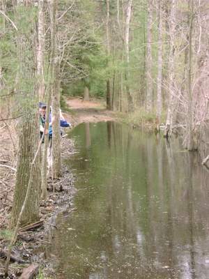 Dave, Michelle, Kathryn and I met in Woburn and drove up to Monadnock. Using the directions from the AMC guide book and some tips from our Webmaster, we were able to find the trail head which was down a muddy unmaintained road. Michelle was excited to be able to use the 4 wheel drive capabilities of her Subaru Outback as she went charging through the mud. When we got to the trail, we met up with Jen (who also had an all-wheel drive Subaru).