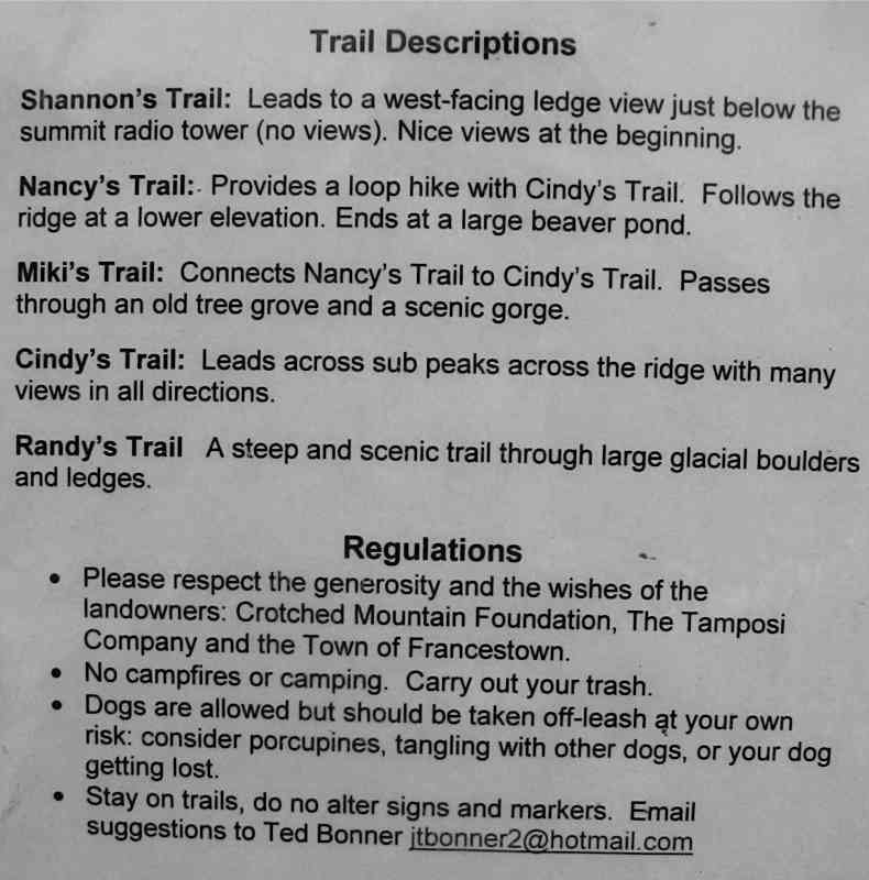 The Crotched Mt. trail system (courtesy of Ted Bonner) is
