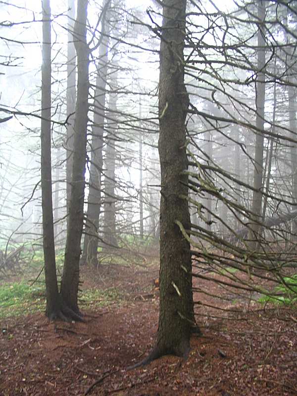 Patricia heading up Cannon Mountain via the Hi Cannon Trail. The weather