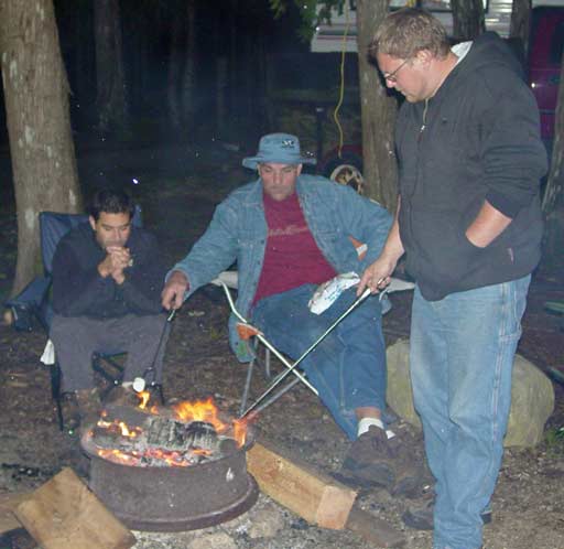 ...and for dessert Martin, Perry, and Dan roast marshmallows!