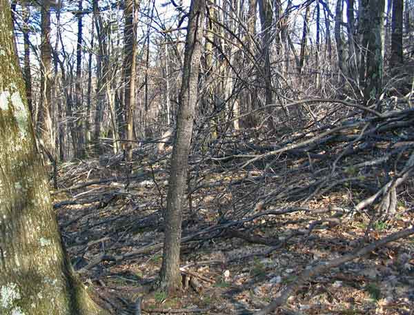 At around 1400' or so was the worst with lots of bushwhacking around fallen