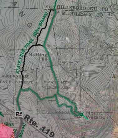 | Mt. Watatic's main parking lot is on Rte. 119.