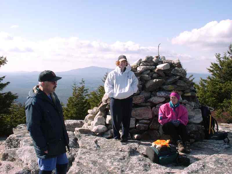 Dave, Jen, and Michele take a break at the big cairn on the summit