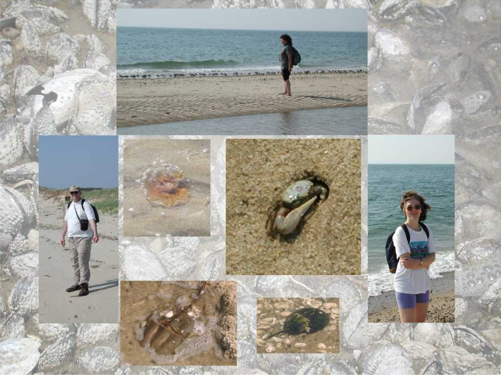 brownish jellyfish, millions of tiny crabs (they were all over the