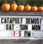 Uhhhh...Catapult demos? Yep, that's what the sign