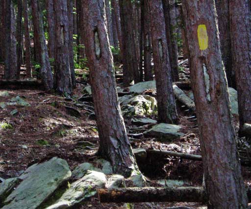 goes through some woods, across a ski trail, then on up to the top of Mt.