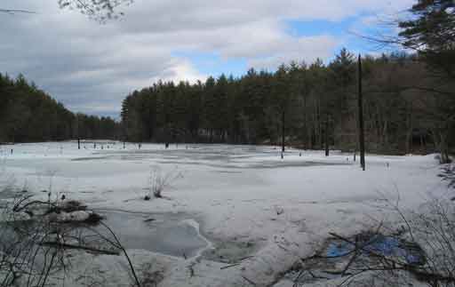 way toward Rte. 130 from the west side of the larger section of Beaver Brook